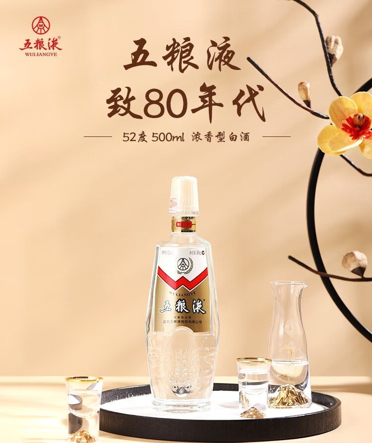 五粮液股份出品 浓香型白酒高度粮食酒水 官方授权 自饮收藏送礼 52度 500mL 6瓶 五粮液头曲淡雅