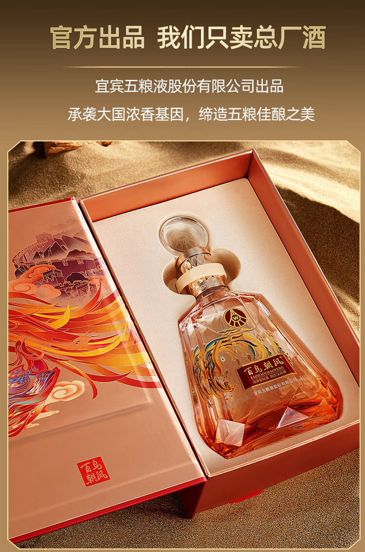 五粮液股份 百鸟朝凤红钻 浓香型白酒礼盒 52度500ml*2瓶礼盒装 宴请酒
