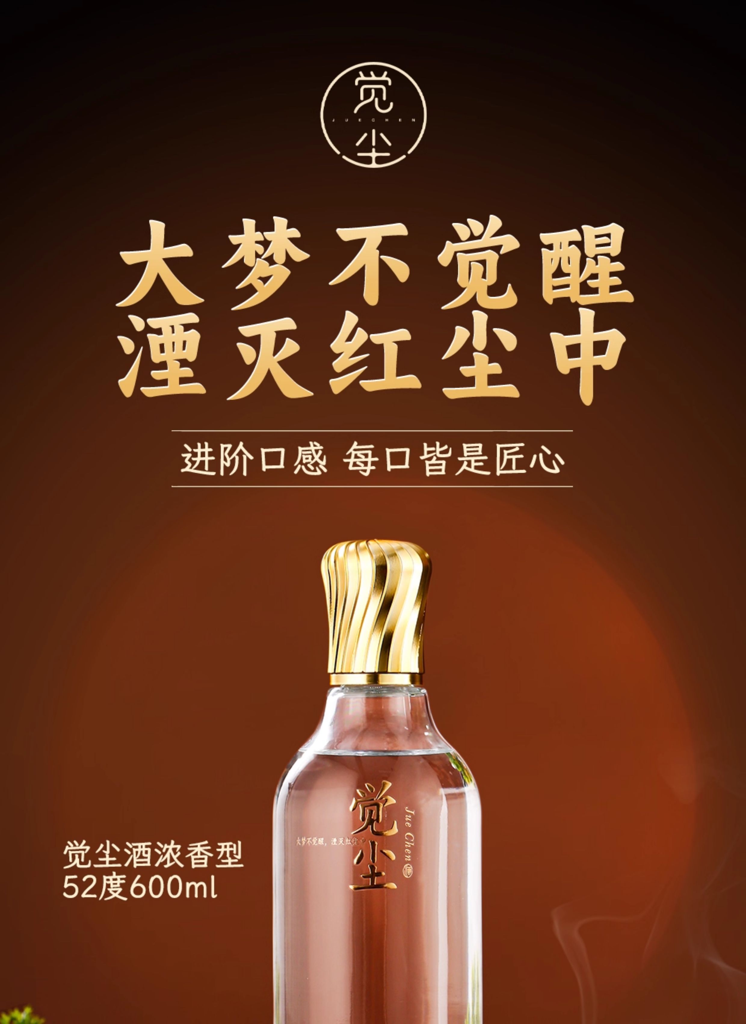 觉尘酒浓香型52度纯粮高端光瓶口粮酒600ml单瓶装